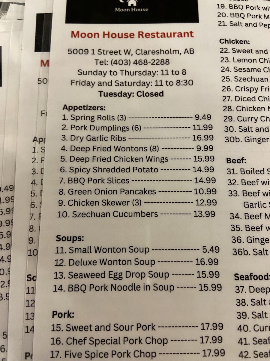Moon House Restaurant Menu